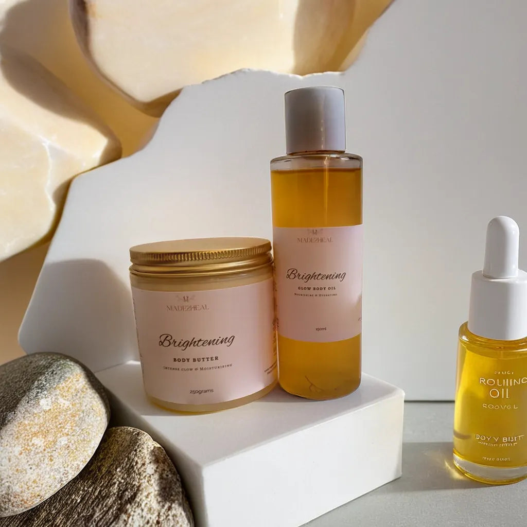 Enhance your natural glow with our Brightening Glow Body Oil. Infused with saffron and antioxidant-rich oils, it absorbs quickly to give your skin a radiant, silky finish.